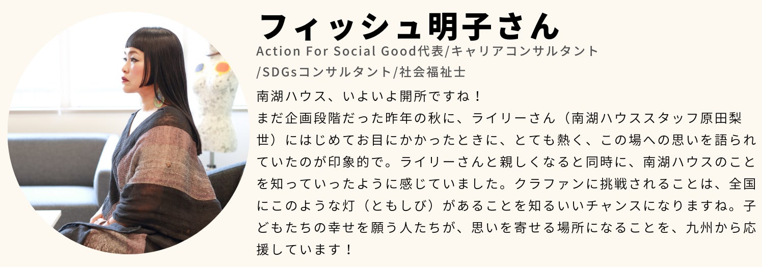 子どもシェルターや自立援助ホームなどのスタッフを経て、南湖ハウスと出会う。一児の母。社会福祉主事など。