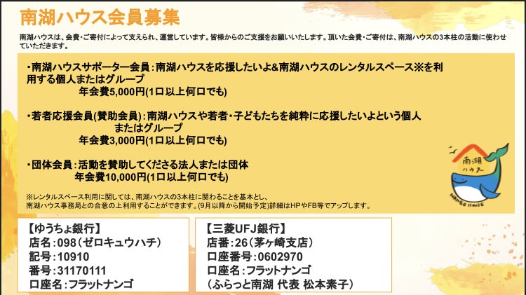 クラファン後はじめてのユースサロン、コロナ対策し開催しました!!社会的養護の生活を経験したユース4名、ボランティアさん4名がご参加いただきました!朝から大量の豚汁作りにとりの唐揚げに暑い中、汗だくになりながらお料理を作っていただきました!!今回クラウドファンディングでいただいたユースチケットもご利用いただき、ユースからメッセージもいただきました!感染対策をしながらみんなで美味しい料理をいただきお腹も心もほっこりしました☆自己紹介では、女性ボランティアさんが実はハーレーに乗ってたり、フットサルをしてたり男勝りな女性ボランティアさんに囲まれてるなと笑そしてユースがお土産で持ってきてくれた大量のアイスをみんなでいただきました!その後女子はピアノを演奏してくださり(絶対音感を持ちなんでも弾ける‼)男子はゲームの話やクルマの話で盛り上がってました〜!夕方にも子連れの来客があったり、にぎやかな時間はあっという間に過ぎていきました!来月はどんな方が来てなにが食べれるかな〜と今からたのしみです!少し涼しくなってきましたね食欲の秋‼︎謳歌していきましょう!!*ユースサロンに参加したいユース、ボランティアさんは南湖ハウスまでご連絡ください。