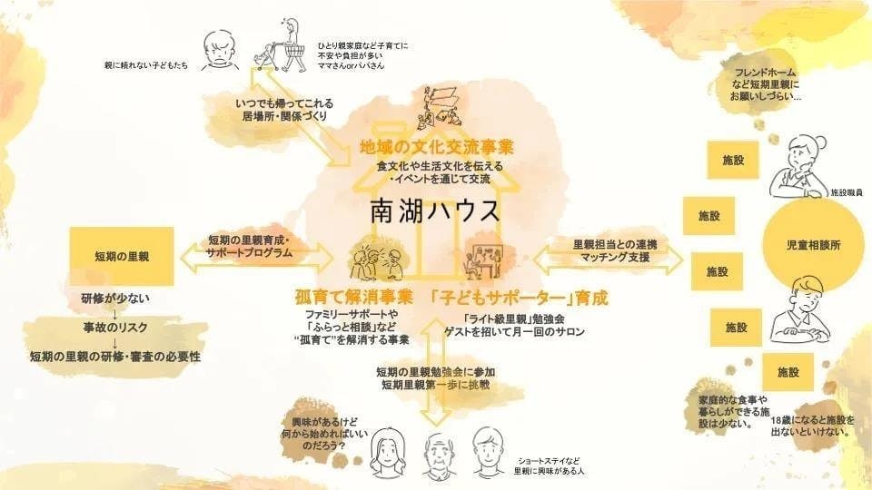 詳しくは南湖ハウスの行う3つの事業の②孤育て解消事業をご覧ください。