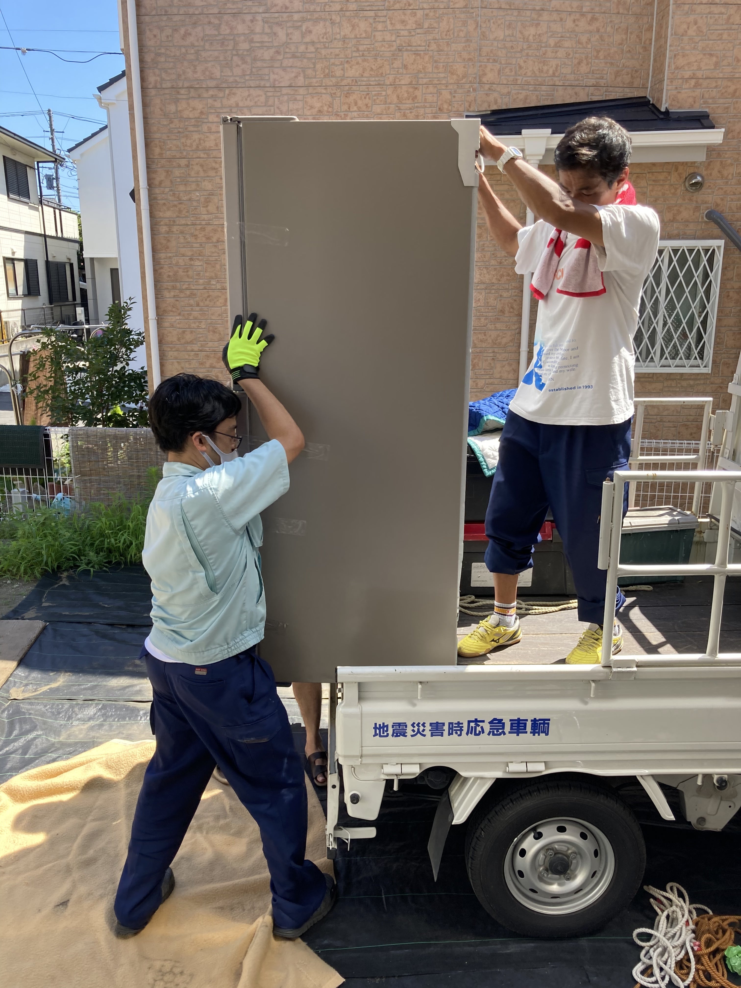 約100kgの冷蔵庫を男手3人汗だくになりながら、