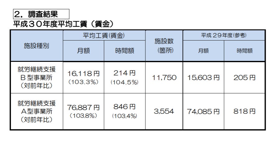 出典元リンク:厚生労働省平成30年度工賃(賃金)の実績について
