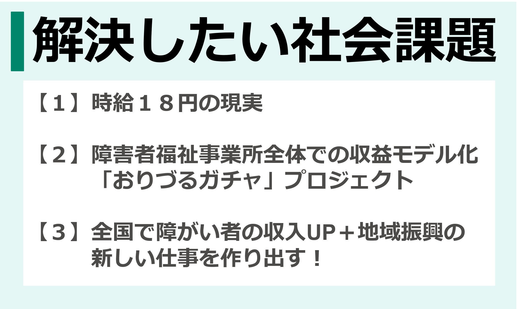 このプロジェクトは、私が事業所を立ち上げて「おりづるガチャ」で成功を目指すものではありません。今まさに苦しんでいる多くの事業所が、力を合わせて課題を解決していくプロジェクトです。