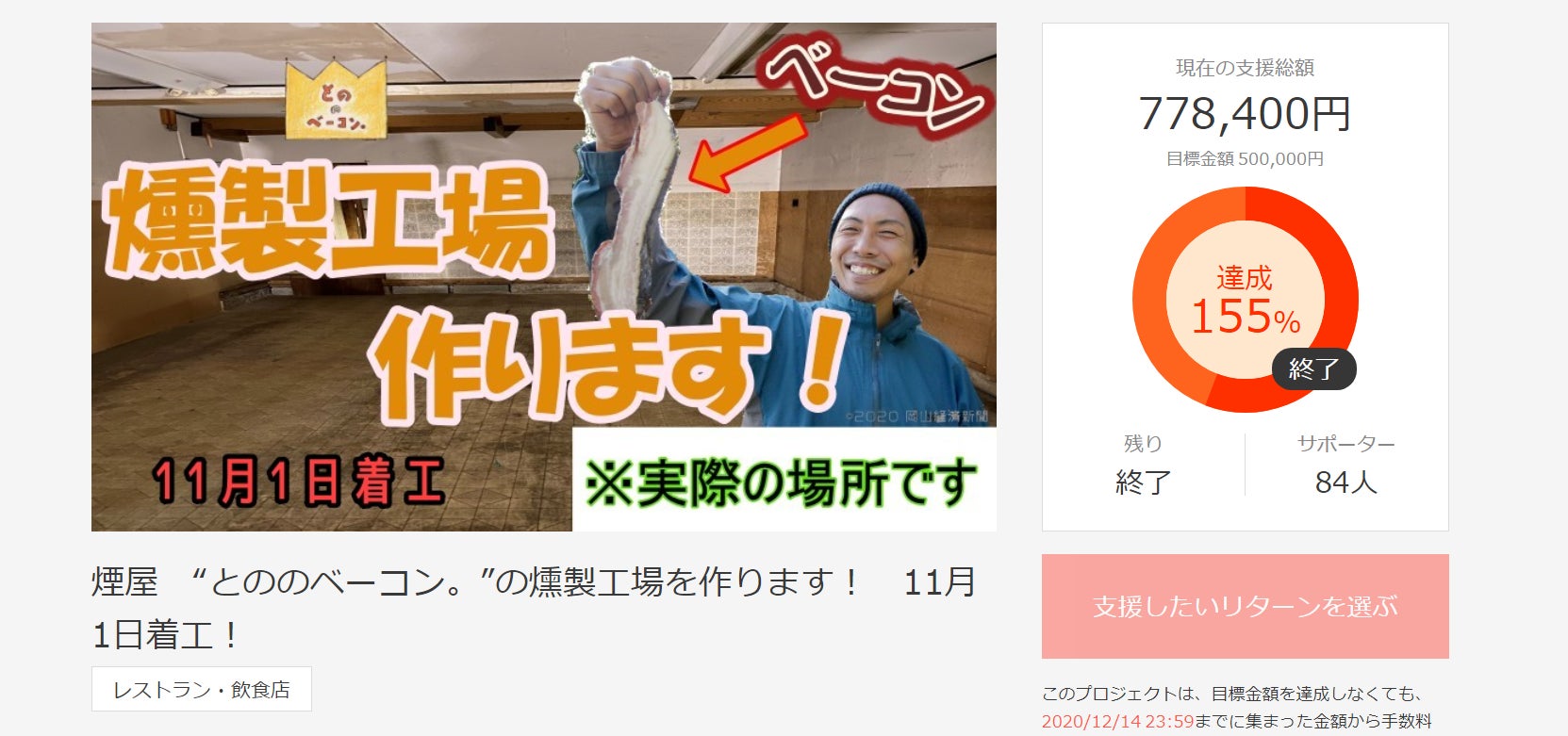 燻製工場を立ち上げる際のクラウドファンディングでは多大なるご支援を賜りましたこと、この場を借りて心から感謝を申し上げます。