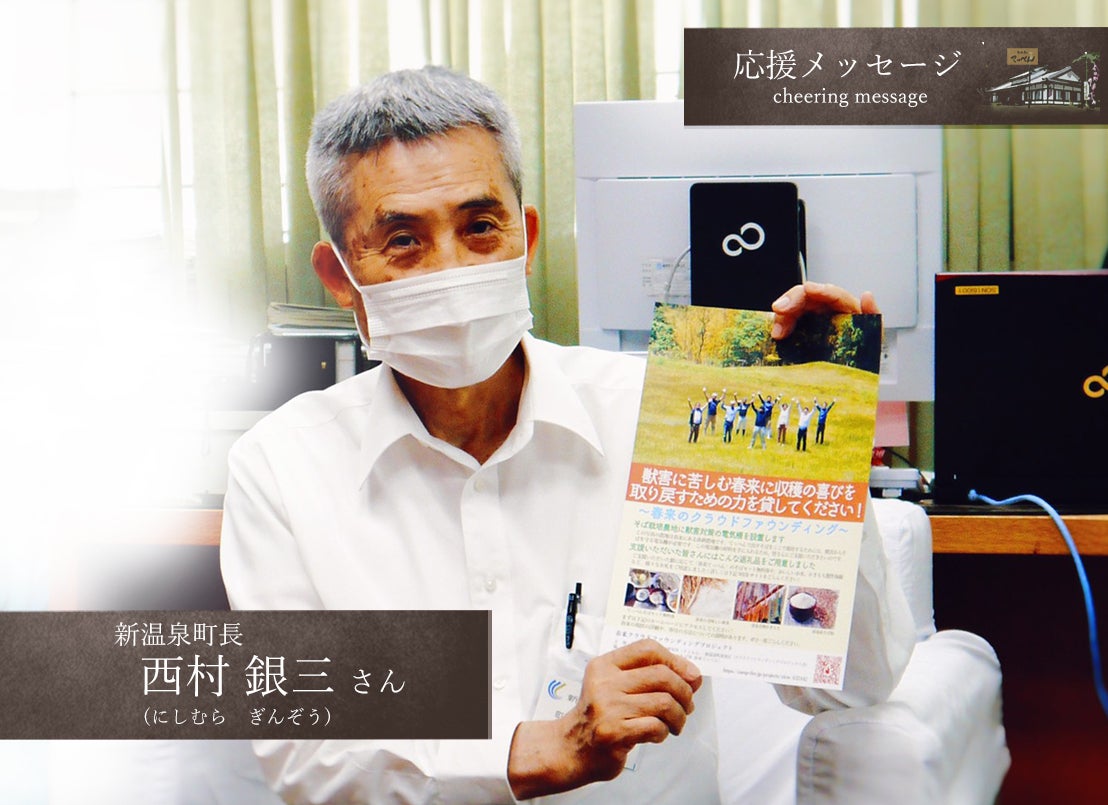 今回のクラウドファンディングでは春来区の「ふるさとづくり」、就農者への「獣害対策」の2 つの目的を持ったクラウドファンディングの活動を通して、春来の魅力が町外の方々にも伝わり、 新温泉町に関わりを持っていただけることを嬉しく思います。