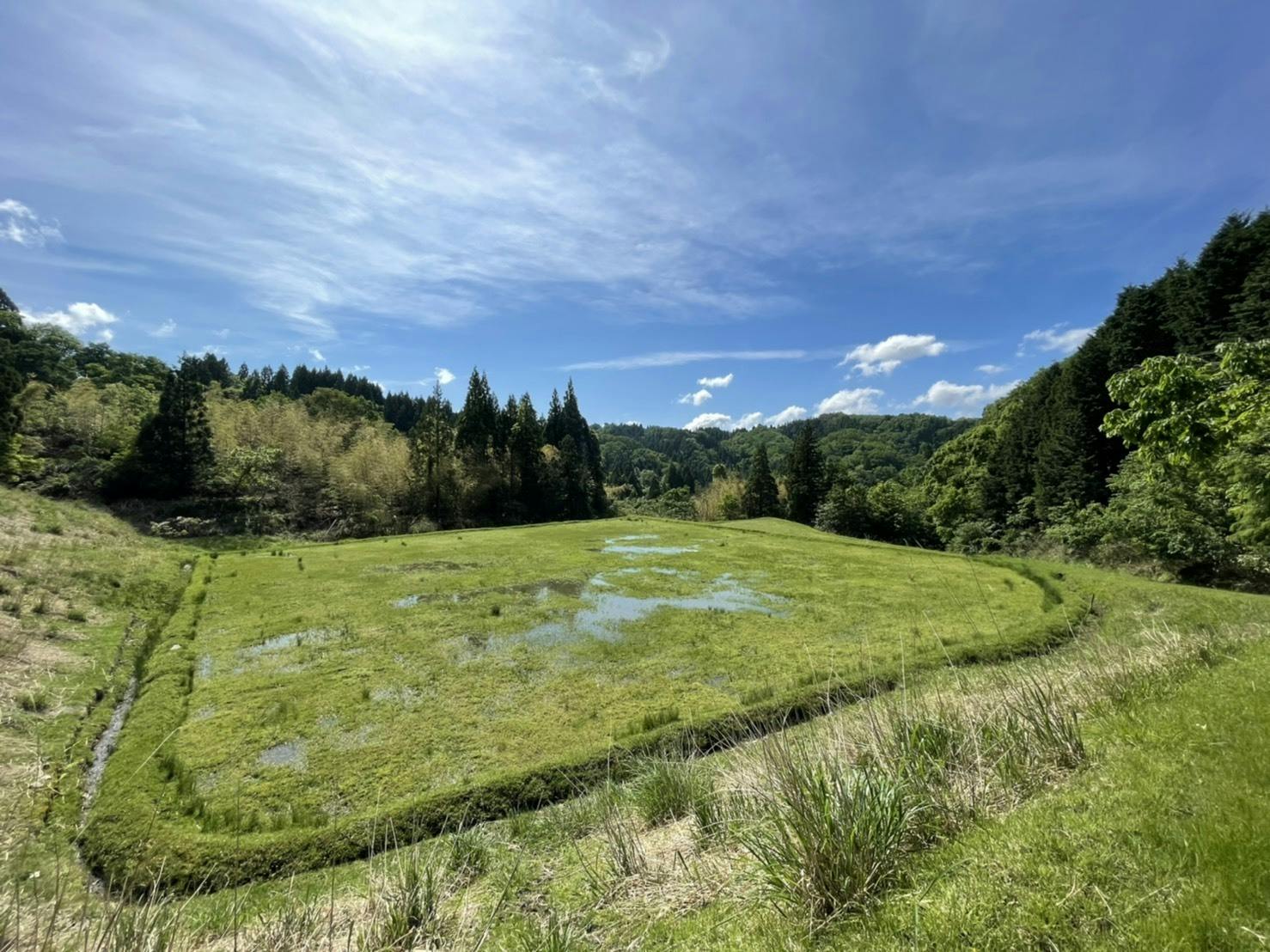また、写真で分かるとおり、水はけが悪く、圃場内に水が溜まってしまっています。この状態ではトラクターが入って耕すことはできないので、そば栽培はできません。