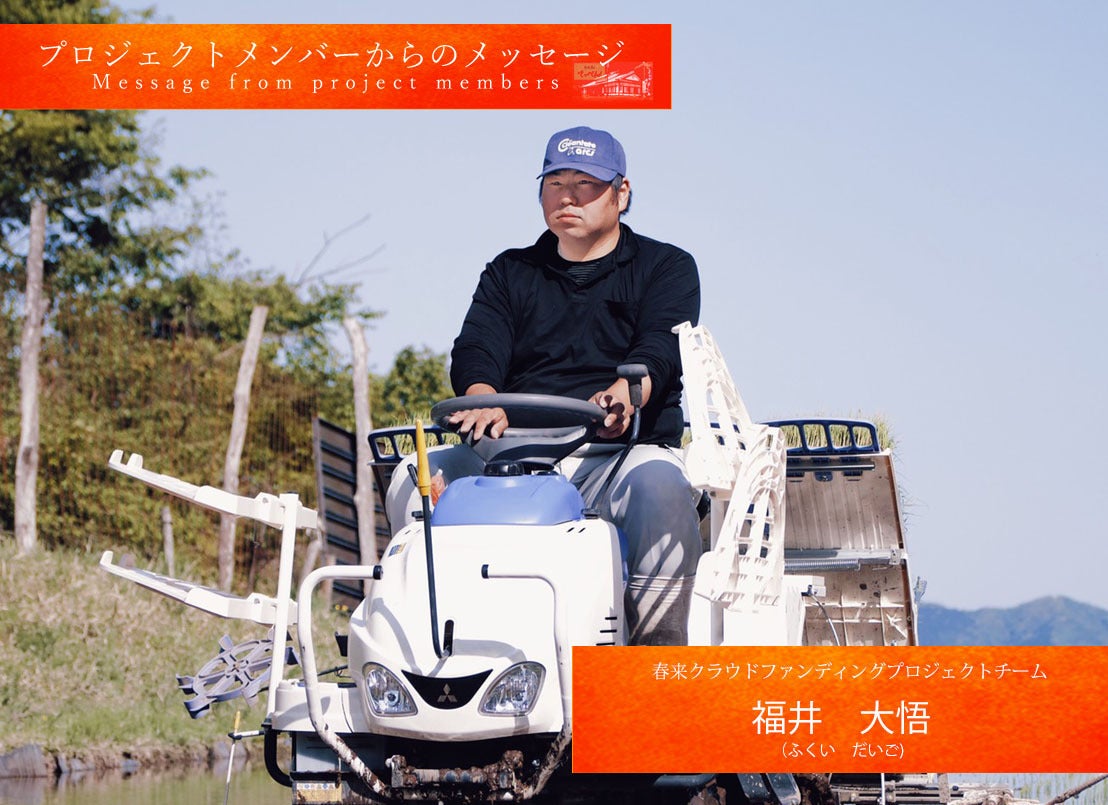 春来クラファンプロジェクトメンバー 福井 大悟より