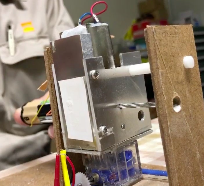 しかし、市販のモーターだとパワーが弱く、どうしても穴を開けることができませんでした。