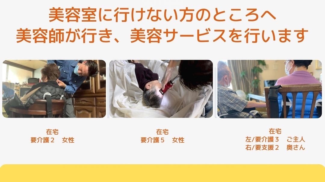 要介護の方向けのカットやシャンプーの方法をオンラインにて実演解説いたします。自宅や施設など、さまざまなシーンで実践してきた訪問美容師の経験とスキルをシェアさせてください。9月開催予定の回にご招待。