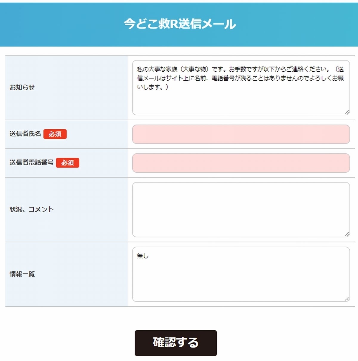 ⇒ 今どこ救R送信メールお試し用