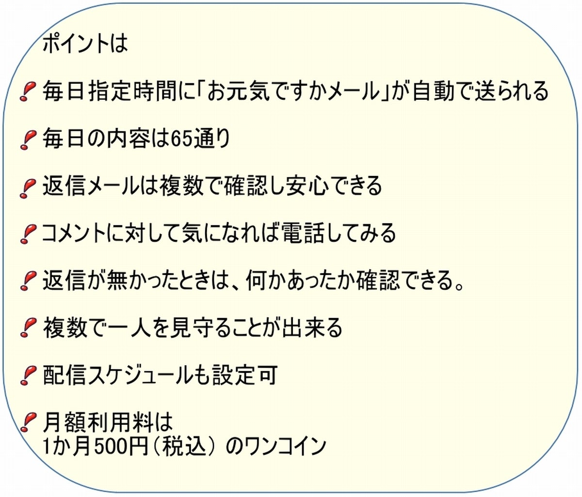 【お元気ですかメール】初期設定費 2000円 プラス お元気ですかメール 500円 12か月提供