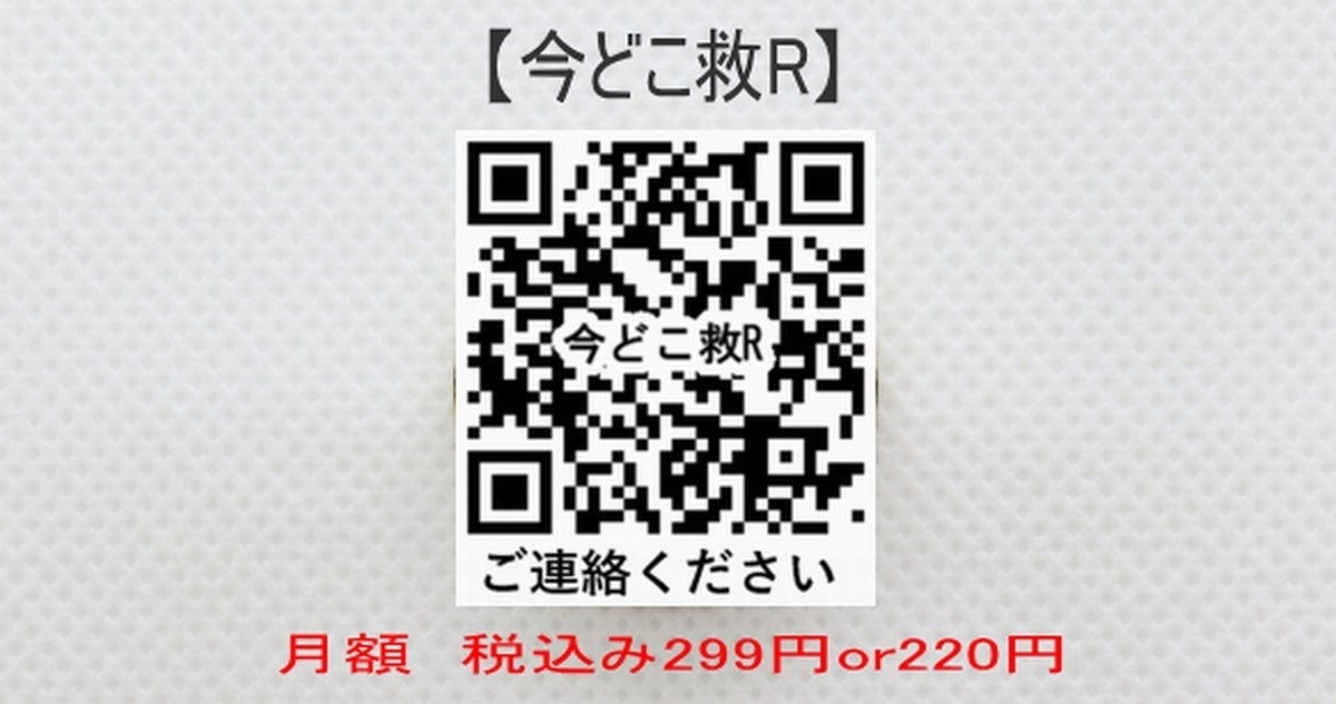 【今どこ救R】初期設定費 1500円 プラス 今どこ救R 298円 or 220円 4か月提供