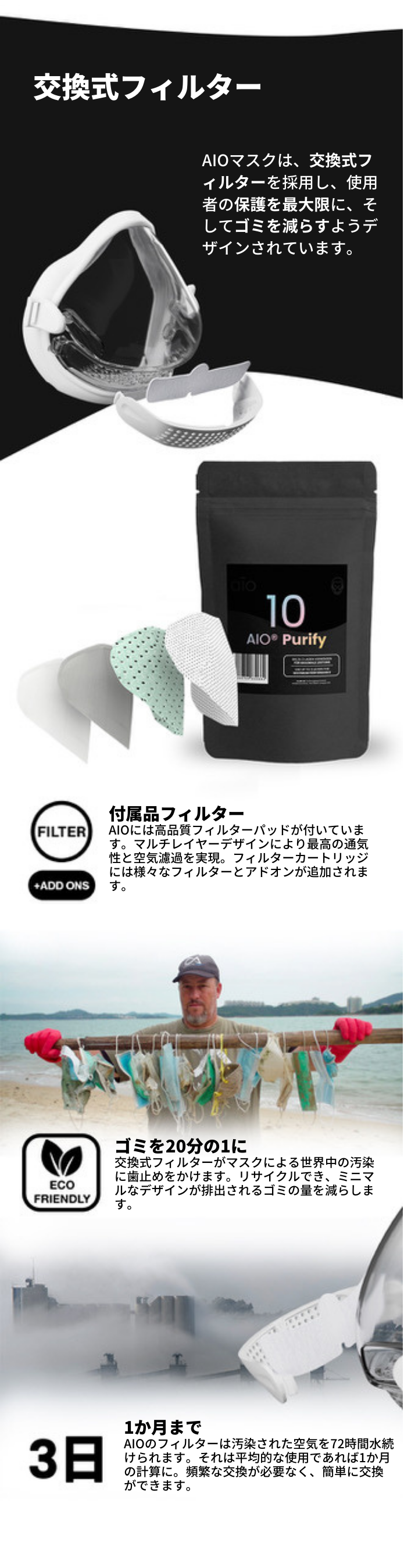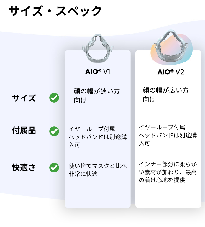 *AIOは医療デバイスではなくコミュニティマスクです。