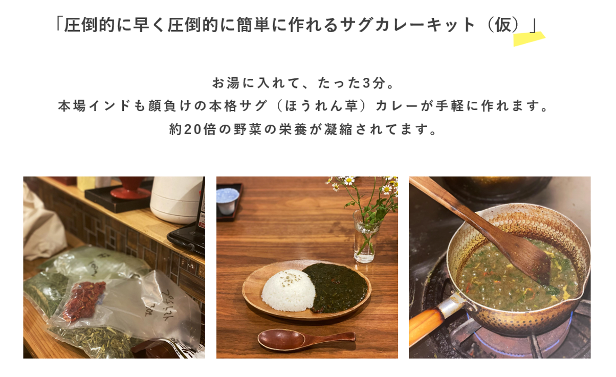 開発中①:圧倒的に早く、圧倒的に簡単に作れるサグカレーキット(仮)