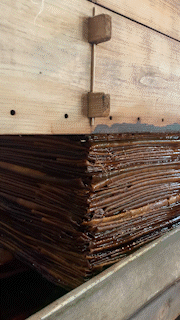 今でも”舟入れ”という伝統的なスタイルで仕込みをされていて、このGIF画像の最後に少し見える液体が、熱処理する前の活きた酵母が居る醤油です。