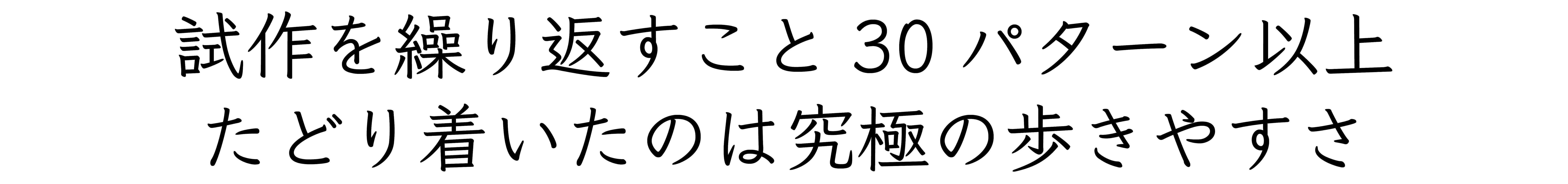 そこでリフトが靴工場としての技術を活かして施したのが、靴の先端部の“反り”。数々のスニーカーやアウトドアシューズの形状をサンプルに試作すること30足以上、延べ1,000Km以上のテスト履きを重ね雪駄として最も歩きやすい反りの角度を開発しました。