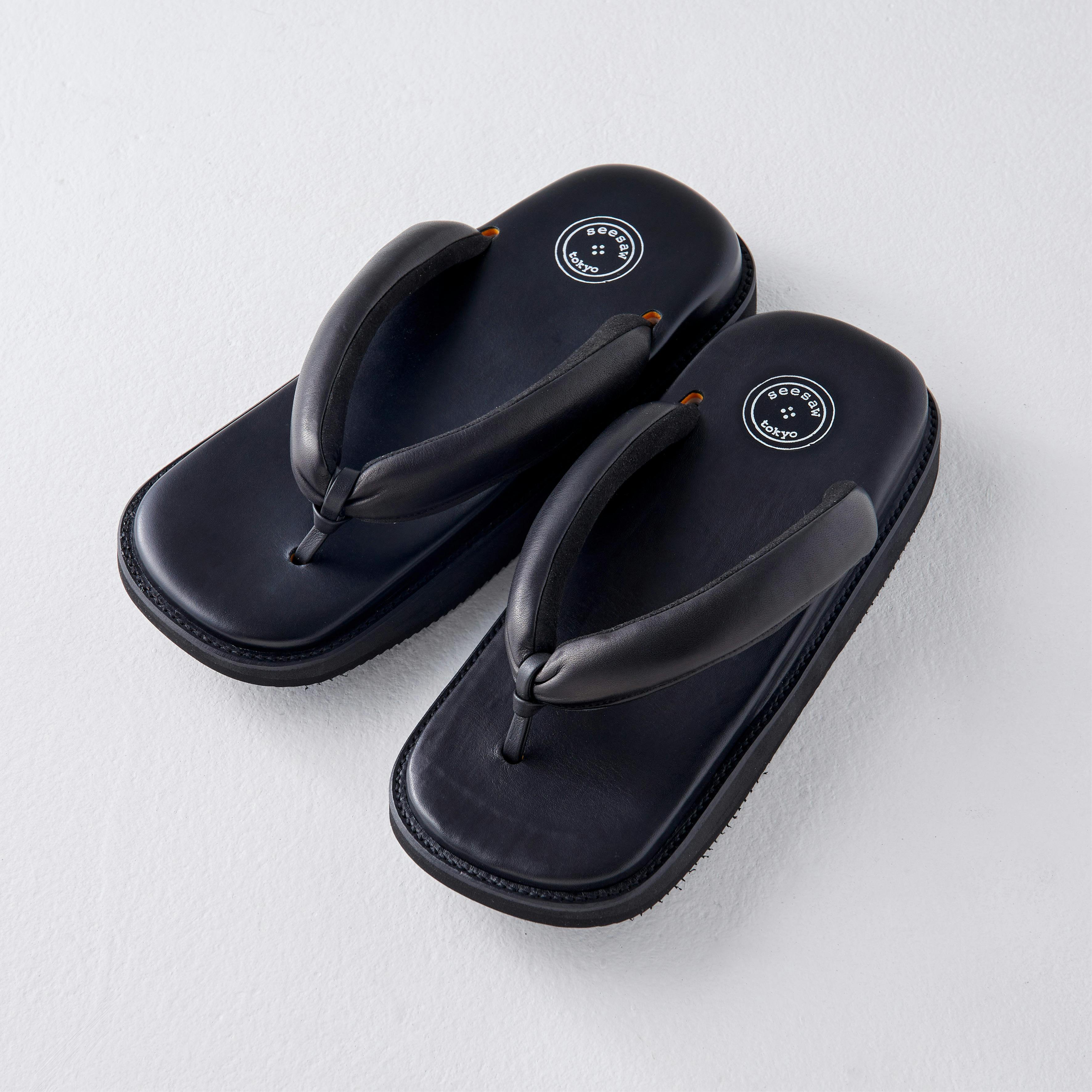 "ブラック" 男性的なオールブラックは鼻緒部分にもリフトが厳選した上質なレザーを使用。艶やかな素材の風合いが着こなしにワンランク上の質感を加えます。