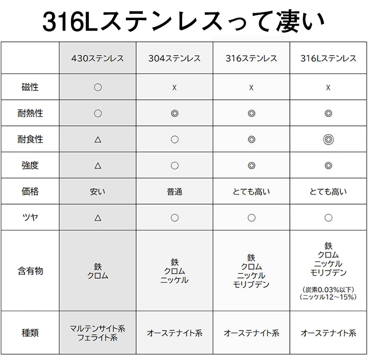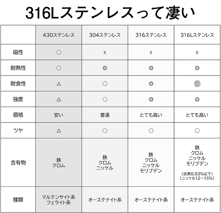 ・高品質な316Lステンレス100%使用!安全で衛生的。