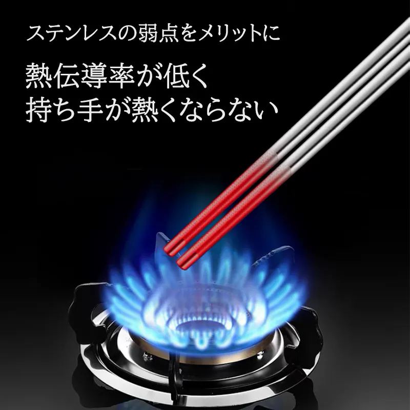 ステンレスの弱点である熱伝導率の低さは、菜箸になったとたん長所に早変わり!温度の高い揚げ物や煮込み料理で使用しても、手元が熱くなることはありません。