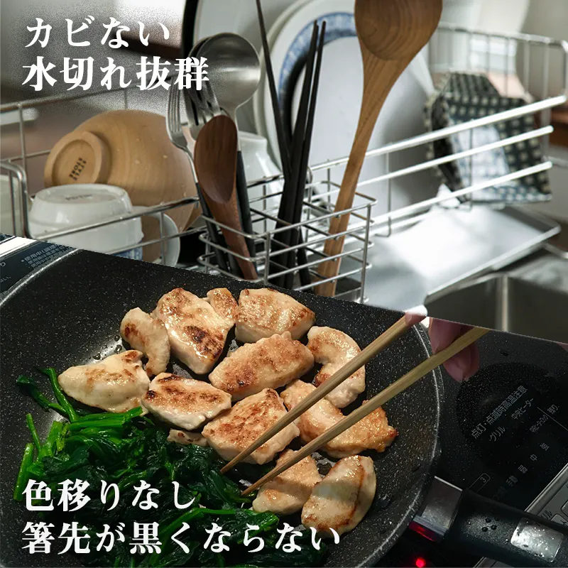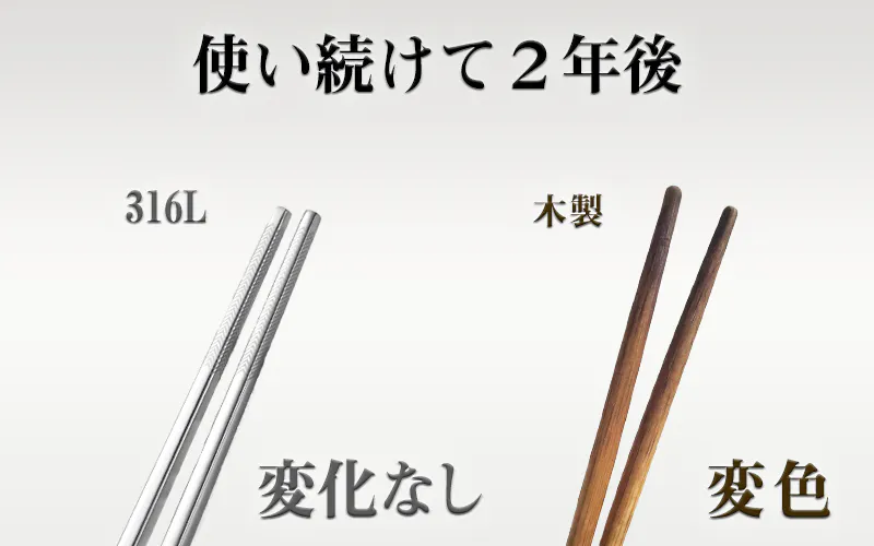 菜箸を使う時に気になっていた箸先の汚れ。実はこれ、前のお料理の色やニオイが取り切れていなかったことをご存知でしたか?変色や汚れはお料理美味しさを損なう原因にもなります。安心して使える316Lステンレスなら衛生的で、料理の種類を選びません。汚れのストレスから開放してくれますよ。