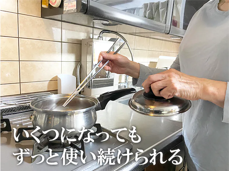 毎日3食の食事作りにおいて、煮物・揚げ物・焼き物・蒸し物などあらゆる調理の際に使うことができ、何年使っても変化しない。それが316Lステンレスの安全性と耐久性です。