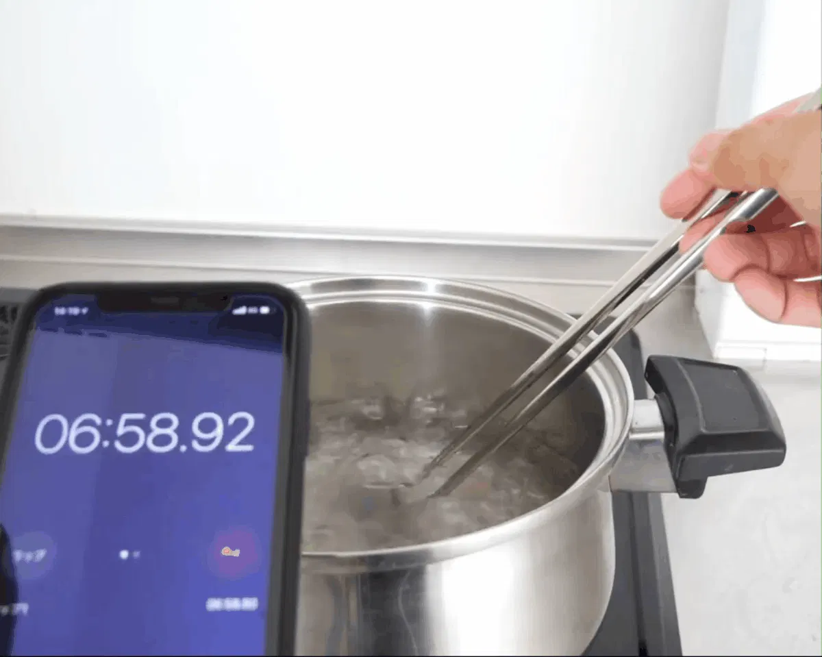 実験テストでは、7分間お湯の中に入れっぱなしでも持ち手は熱くなりませんでした。