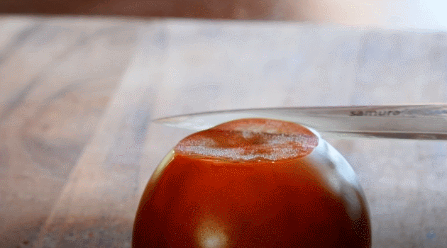 潰れやすいトマトのような食材も形を崩さず薄くスライスでき、しかも食材の刃離れが良く、切り口もきれいで鮮やか。