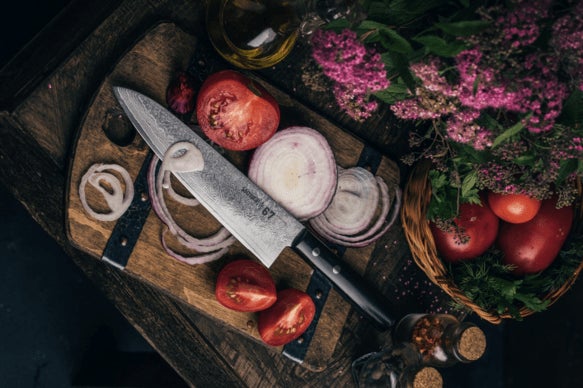 幻想的なダマスカス鋼のブレードは見た目も美しく、食材がスパッと切れる心地よさは世界中のプロの調理人たちを魅了。