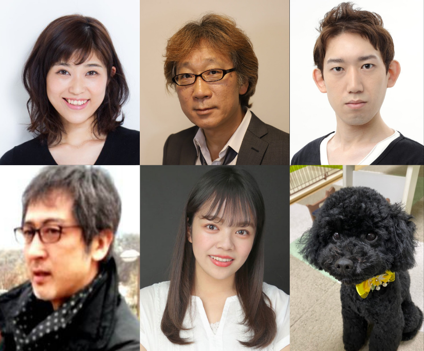 『ハートボイルド・フィクション』以来の神威組出演となる磯崎美穂(上段左)。お馴染みの蜂谷英昭(上段中)と加賀谷崇文(上段右)は、出演のみならず現場制作にも奔走し、お家芸である「現場専任スタッフ0人体制」を支える主軸メンバー。加え、前作から引き続き参加の小林一三(下段左)と、グラビア等で活躍する「泳げるGカップ」野々のん(下段中)。加えて萩原佐代子氏の愛犬、萩原くるめ(下段右)は写真での特別出演。