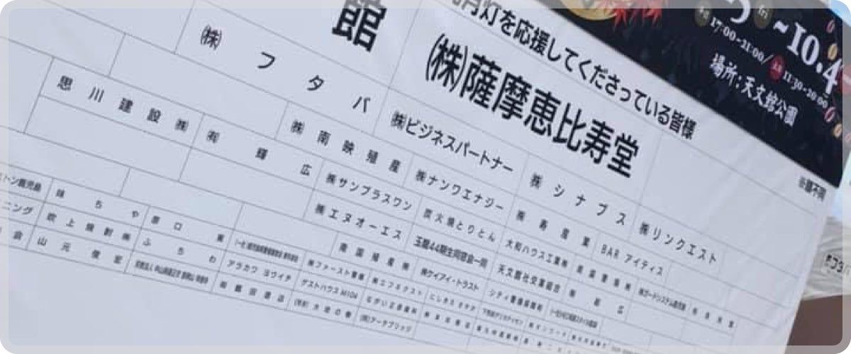 2021年9月開催予定の九月灯の広告看板スペースへの掲載企業様・個人様を募集いたします。