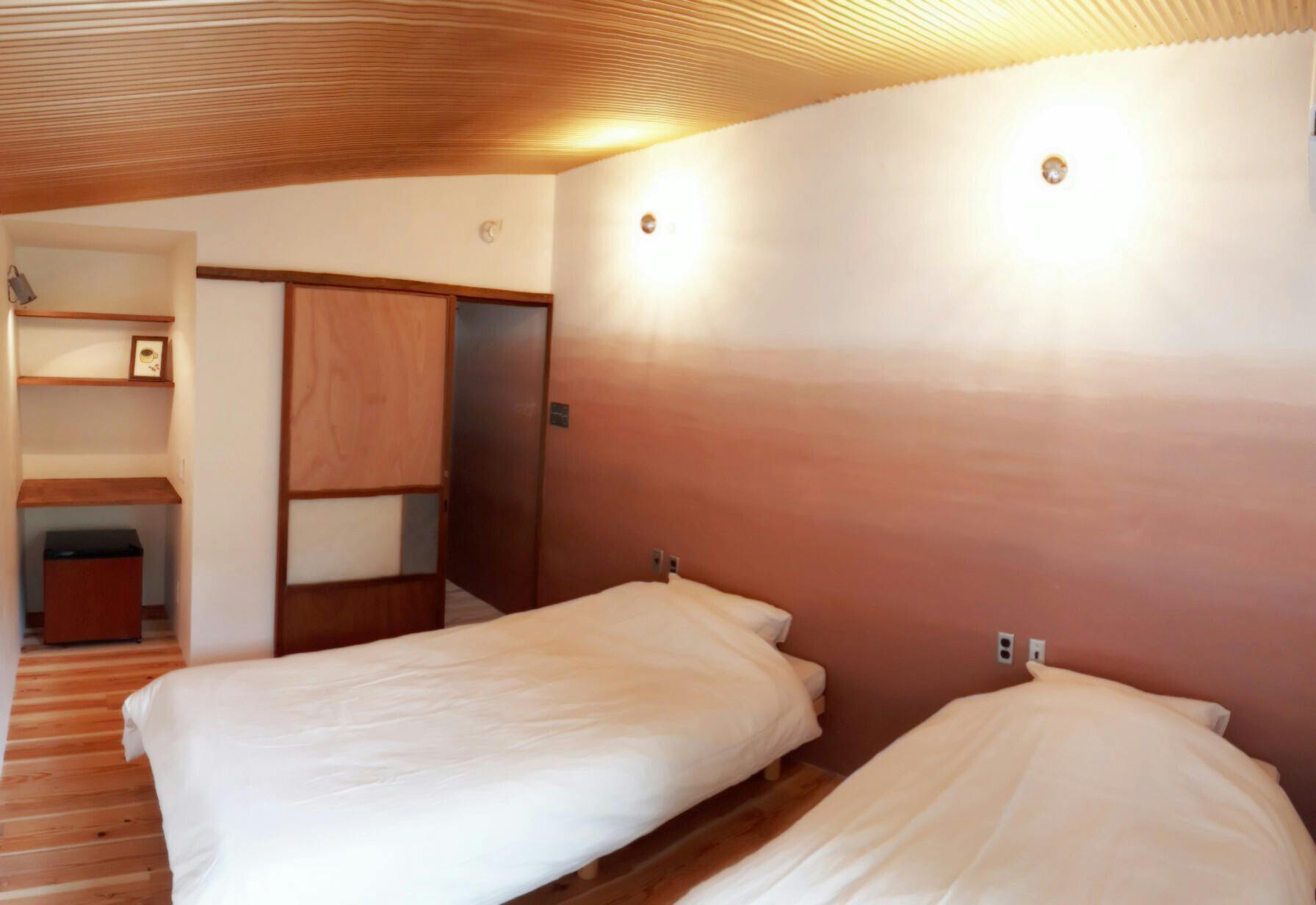 トップ画像は1階の2名客室で、シングルベッドを2床用意しております。