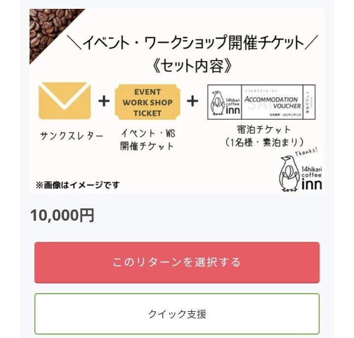 みなさん、こんにちは!【奄美大島で一日一組限定の《泊れるコーヒーホテル》をオープンしたい!】プロジェクトオーナーの浅尾です。7月1日にクラウドファンディングをスタートし、1ヶ月が経過しました!本日までに44名の方から合計474,800円のご支援をいただいております。ご支援下さった皆様、心から感謝申し上げます。本当にありがとうございます。今日は、新たなリターンを追加させていただいたことをお知らせさせていただきます。プロジェクト内でもご紹介させていただいておりますが、当店ではこれまでにカフェスペースを活用して、ピラティス教室始め、お菓子教室、クレイセラピーWS、上映会、講演会、ライブなど多種多様のイベントを開催してきました。今後もこのようなコーヒーと共に学べる場、遊べる場、楽しめる場などを作っていきたいと思う中で、島外の方や島内の遠方の方も時間と気持ちにゆとりを持って、当店でイベントやワークショップ等を開催していただける環境をつくりたいという思いがあり、今回『イベント開催券と宿泊券』のセットをご用意させていただきました。お店の規模や設備でできる事に限りはありますが、当店でイベントをしてみたいし、泊まってみたいという方におすすめめのリターンとなっておりますので、ぜひこの機会にご検討いただけましたら幸いです!(詳細はリターン品をご覧下さいませ。)ご支援前にイベント内容や設備環境を確認されたい方は、お気軽にメールやSNSのメッセージでお問い合わせ下さいませ。メール: 14hikaricoffee@gmail.comフェイスブック: とよひかり珈琲店インスタグラム: 14hikaricoffee