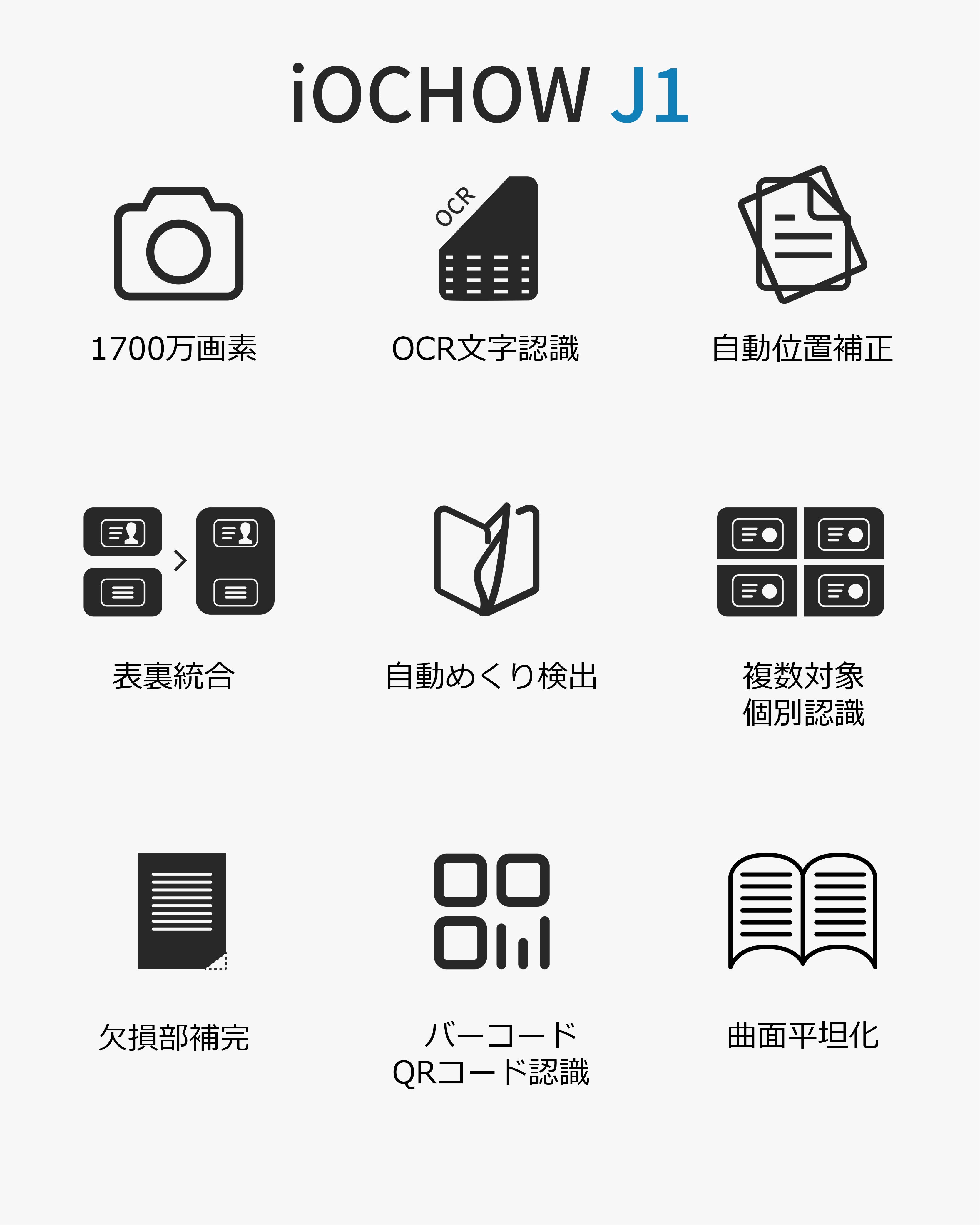 iOCHOW「J1」は付属ソフトに自動補正や合成、分割、読み込んだ印刷物のテキスト化など多彩な機能を搭載。誰でも簡単に画像補正が可能です。