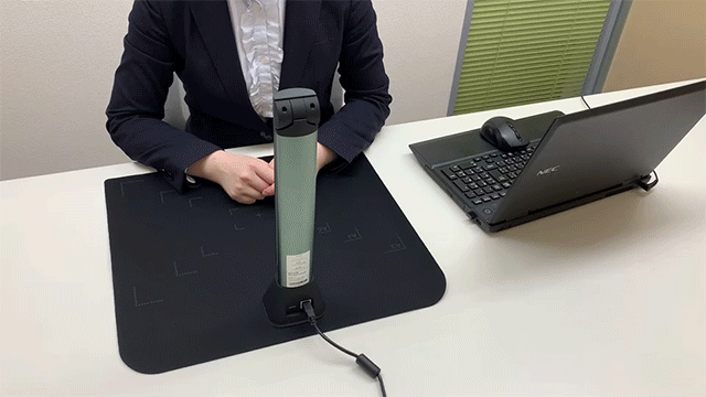 使うときは専用マットをデスクの上に置き、指定の場所に本体を置いてバーを広げ、あとは本体とPCに繋げ、電源を入れたら準備完了。