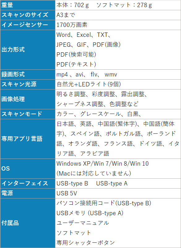• コンパクトかつ超軽量!折り畳んで持ち運べ、いつでもどこでも、PCに繋いでボタンを押したら即時にスキャン