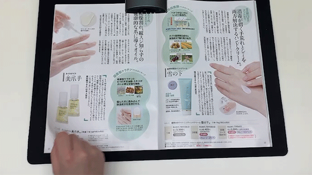 ソフトウェアが見開きページを開いた際の歪みを認識し、スキャン画像を自動的に平坦化。従来のスキャナーが苦手とする見開き中心部を綺麗にデジタル化します。