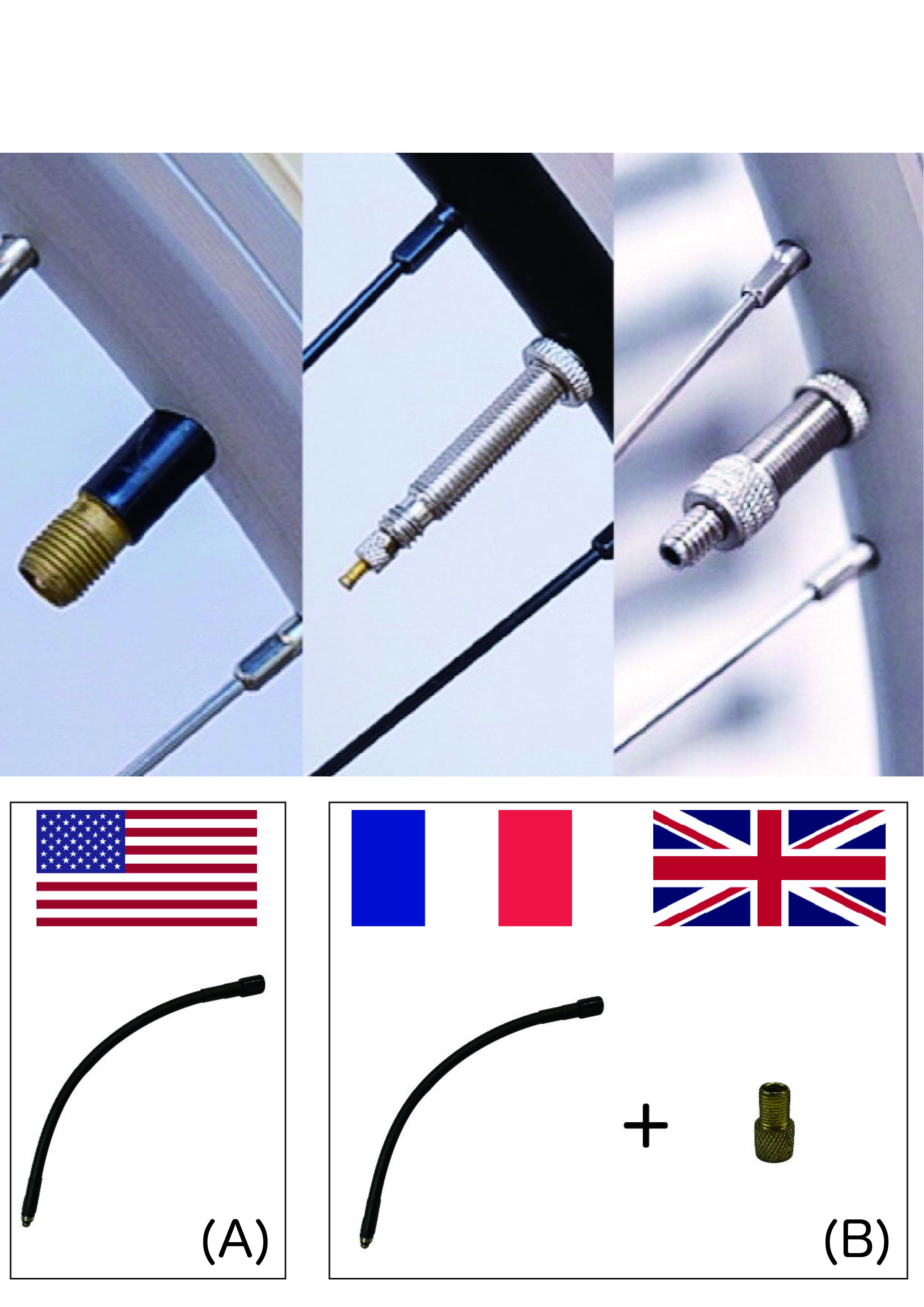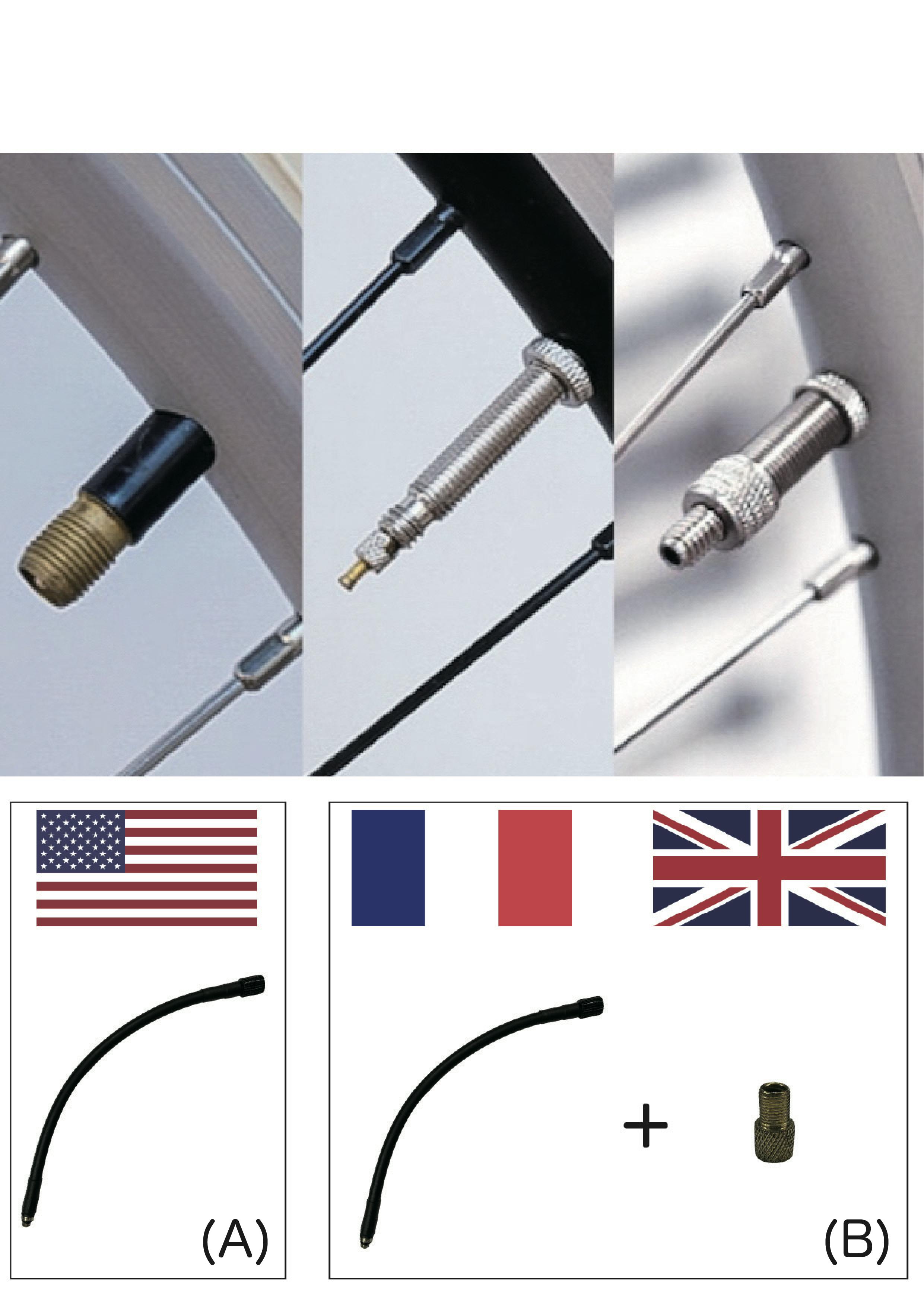 イギリス、フランスタイプのバルブには(B)のノズルを使用します。