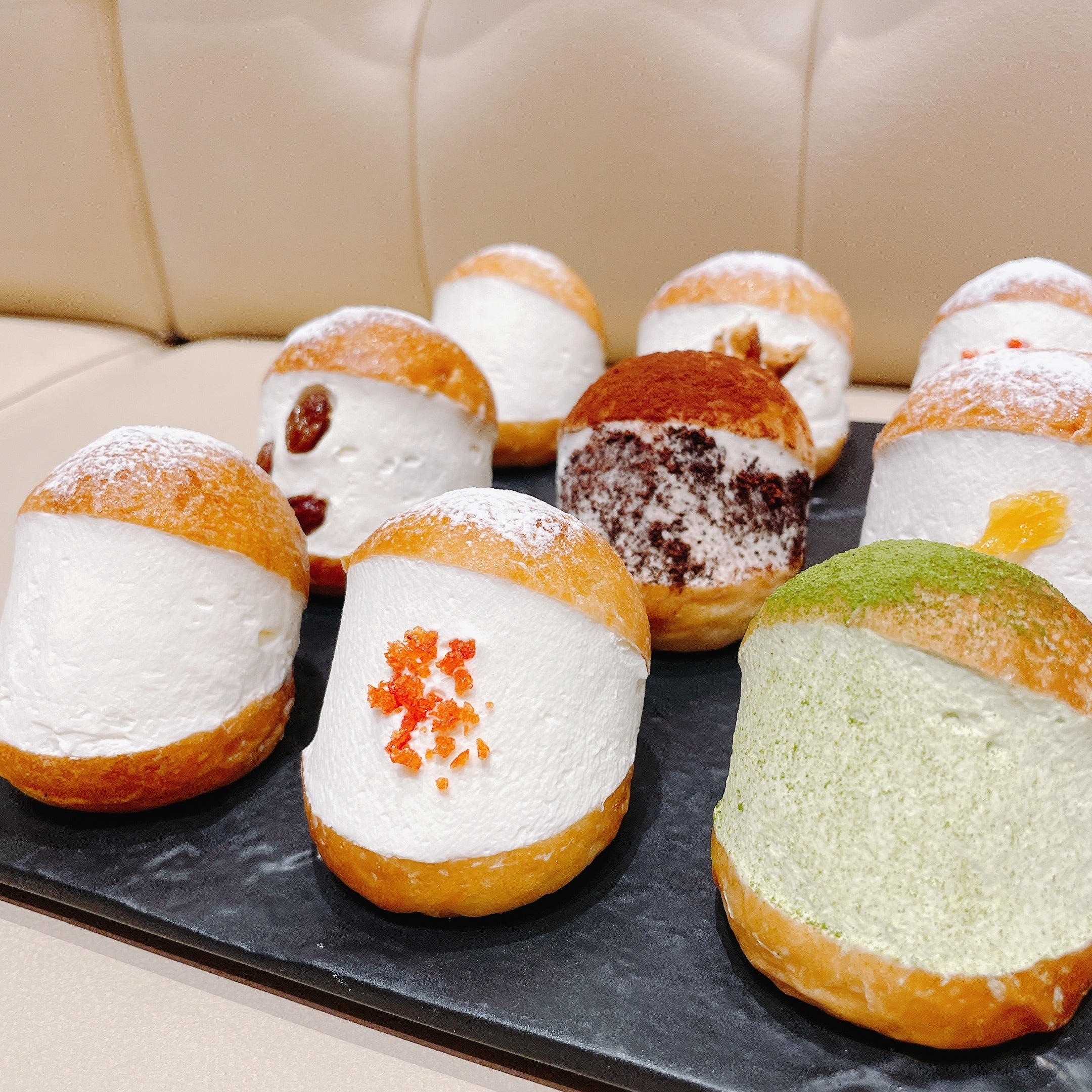 【特製マリトッツォギフト】今年流行りのマリトッツォをイタリア・ローマのレシピに忠実なブリオッシュで作りました!6種の定番のお味(プレーン・いちご・抹茶・ティラミス・キャラメル・オランジュ)と新作3種を合わせてボックスに綺麗に並べられた状態で届く9個入りセットです。