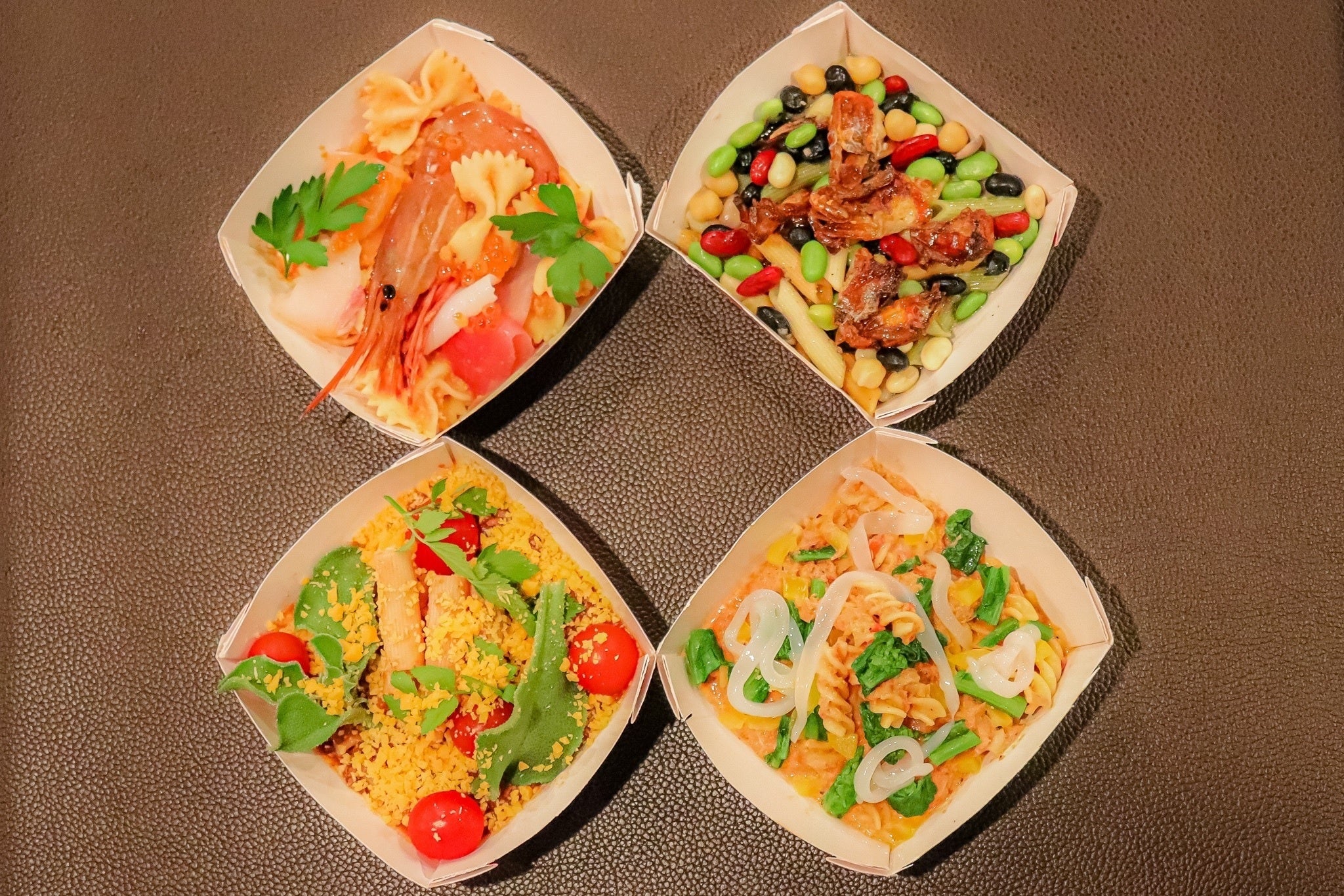 4種類セットはすべての味を楽しめるセットになっていて、『ソフトシェルクラブとヘルシー彩り豆の3色ペンネ』、『生のボタン海老を添えた海老のボロネーゼ』、『イノシシ肉のラグーソースパスタ』、『渡り蟹ソースのフジッリ』の4種類です。