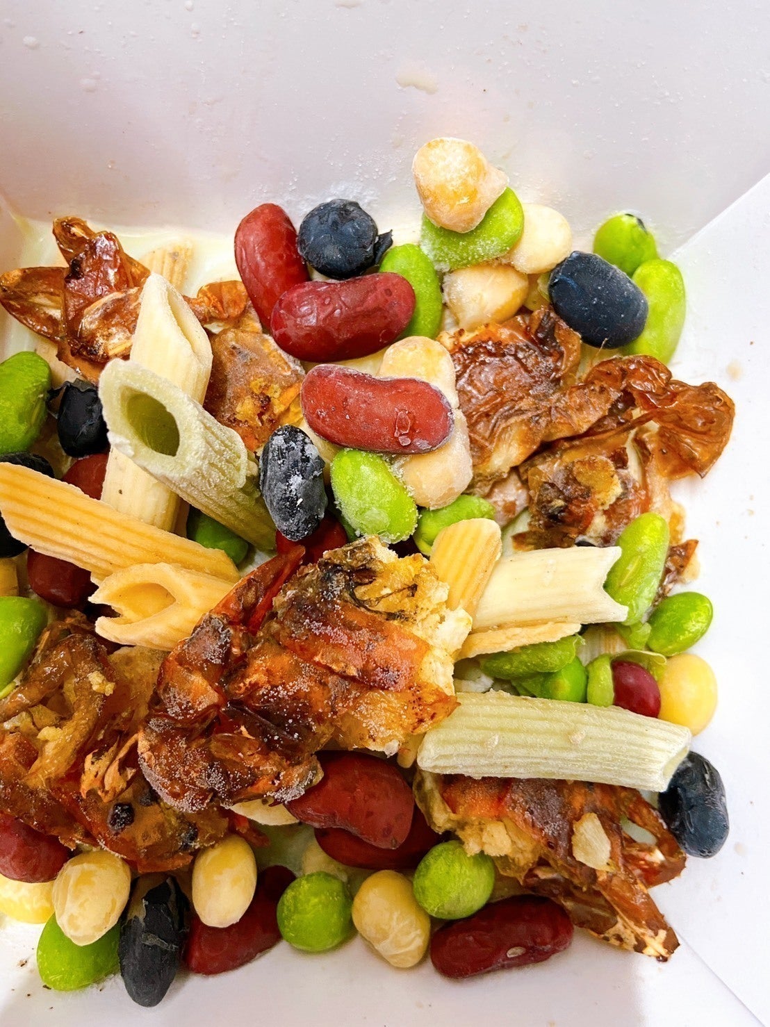 (2)ソフトシェルクラブとヘルシー彩り豆の3色ペンネ