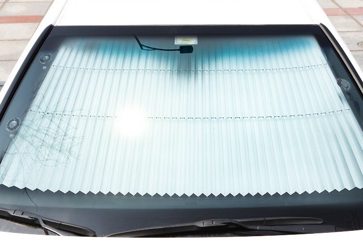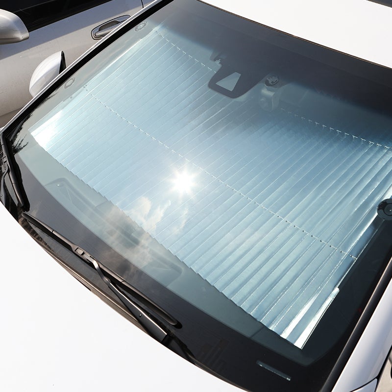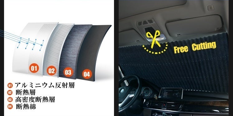車への直射日光を反射し、車内の温度が上がるのを抑制する取り付け式のサンシェード「Sun cut」
