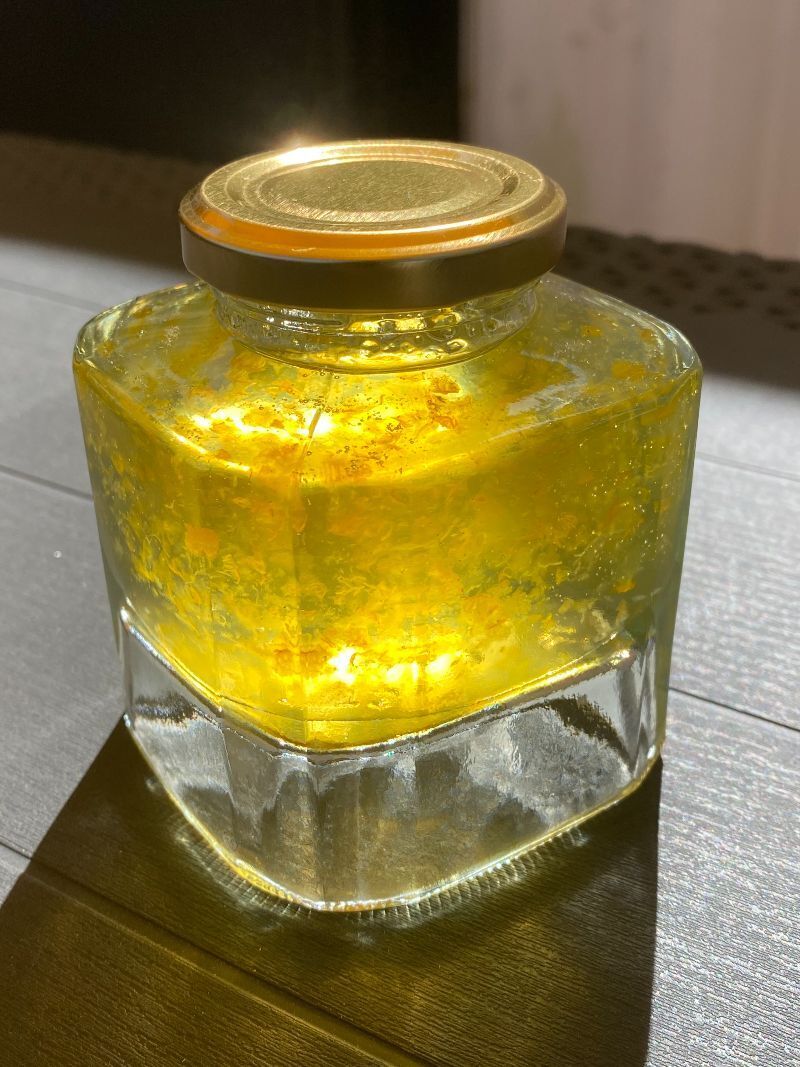 柚子をふんだんに使用し、ピールが宝石の様に散りばめられたゴージャスな柚子ハチミツ