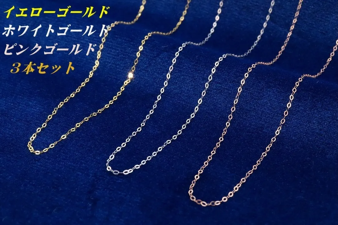 実は、18金にはイエローゴールドやホワイトゴールドなど、カラーバリエーションが複数あることをご存知でしたでしょうか。その中から今回は「イエローゴールド」「ホワイトゴールド」「ローズゴールド」の3種類をご用意させていただきます。