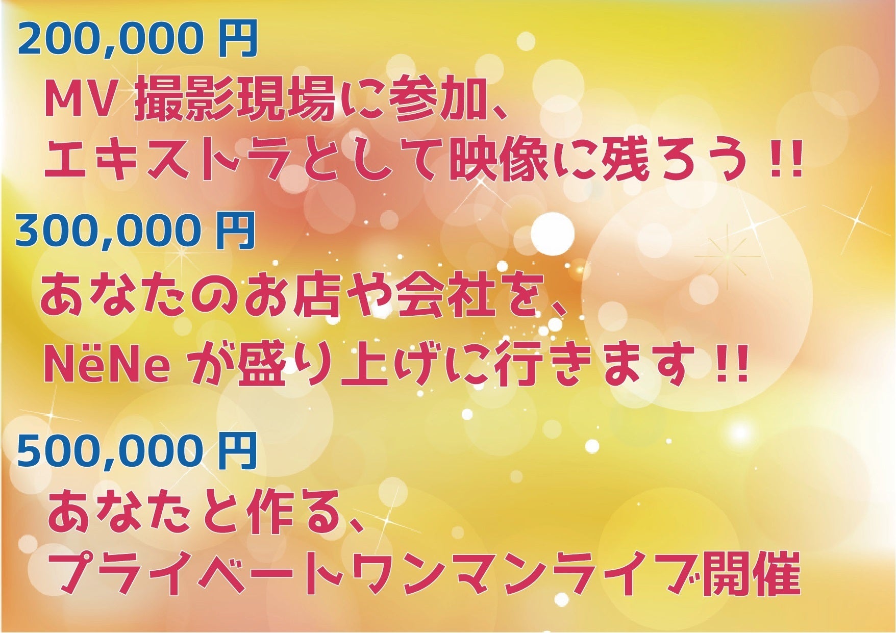 ※目標金額を超えた分は、新たな楽曲&MV制作として使用させていただきます。