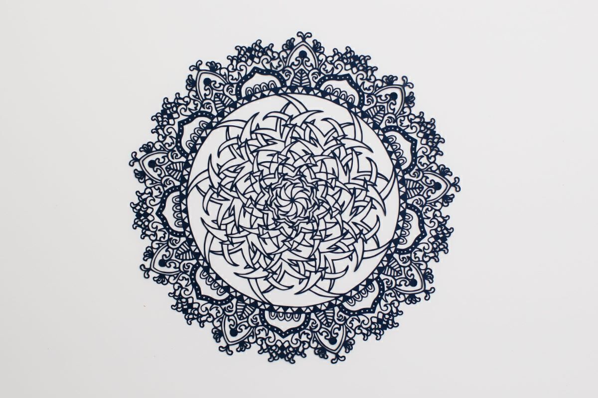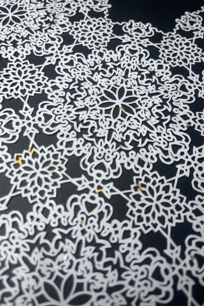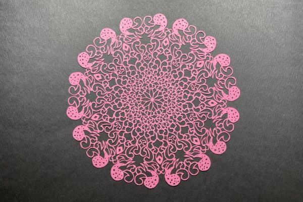 世にも美しい曼荼羅。見たことのないようなデザインの切り絵。その一つ一つの線や形、どれもがとても繊細で、その作品の世界観や素晴らしさは私が説明するまでもありませんね。