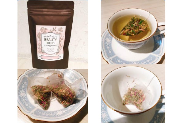 デビュー当時から九さんを応援し、作品の命名を行ってきた「食のコンシェルジュ」ETSUKOさんの「ekkoオリジナルハーブティー ビューティーブレンド」と御礼メッセージ。※ティーパック8袋、ノンカフェイン