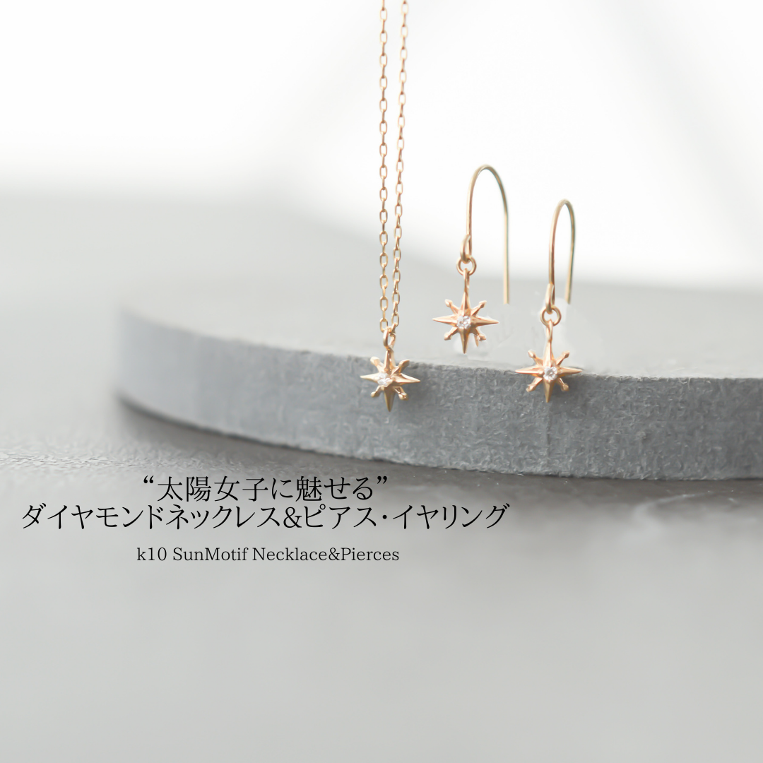 K10 SunMotif Necklace+pierces 2点セット