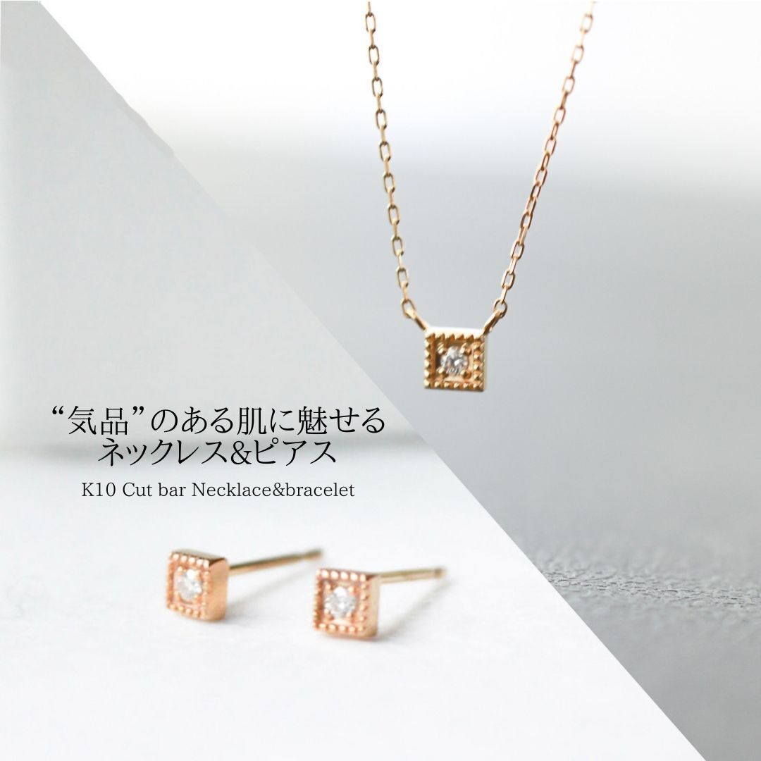 K10 Square Mille Grain Diamond Necklace&Pierces 2点セット