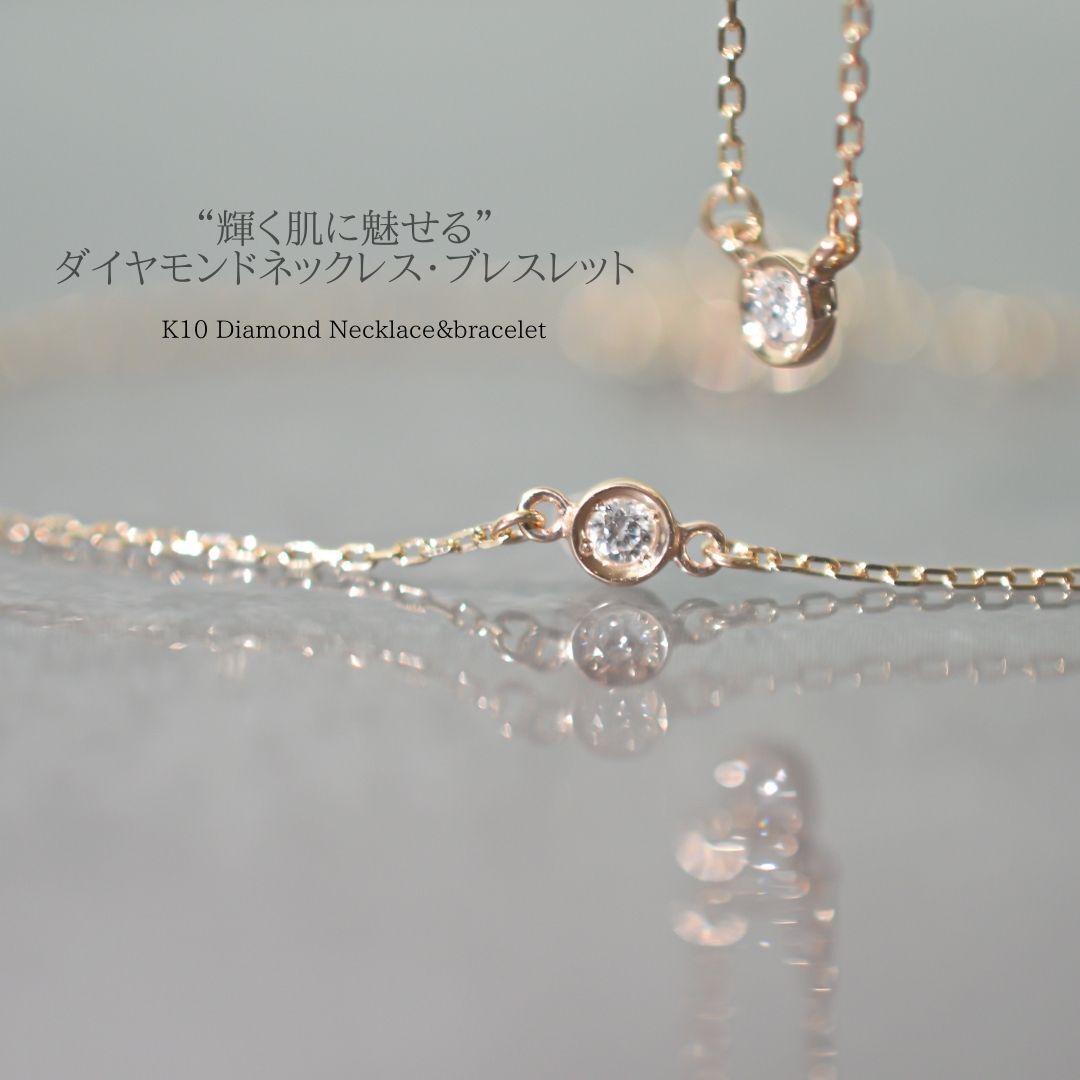 K10 Diamond Necklace 0.05ct&Bracelet 2点セット