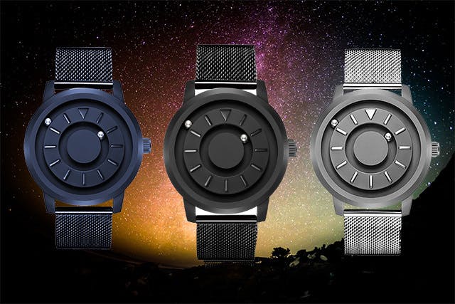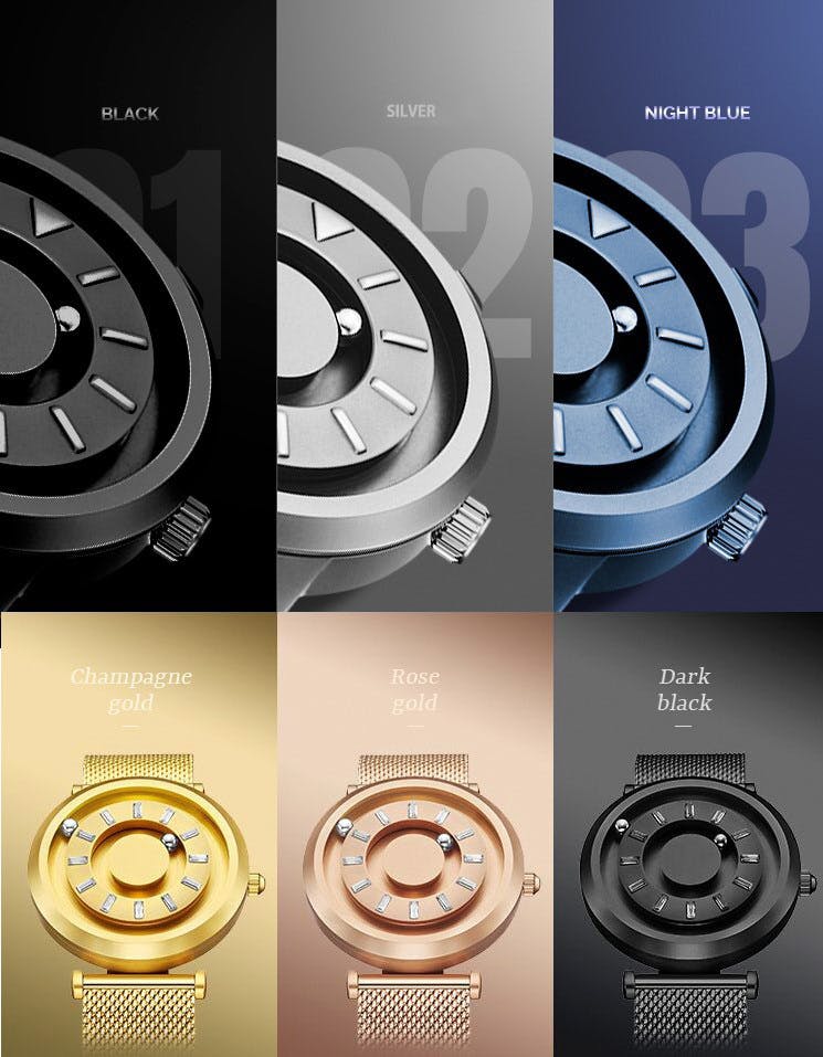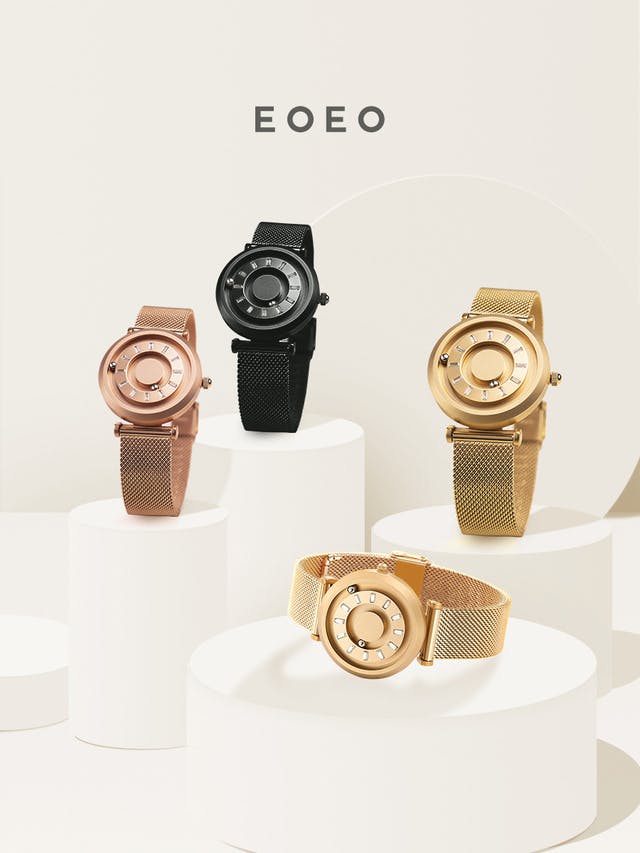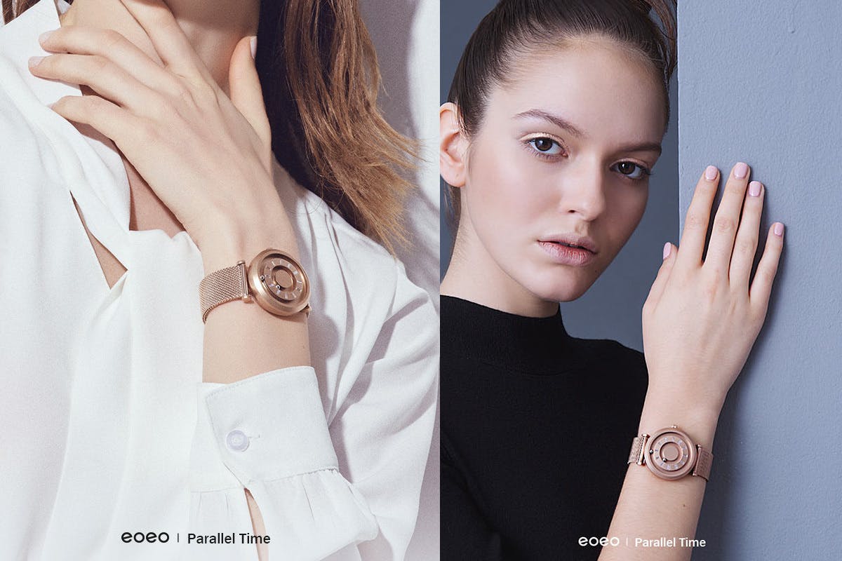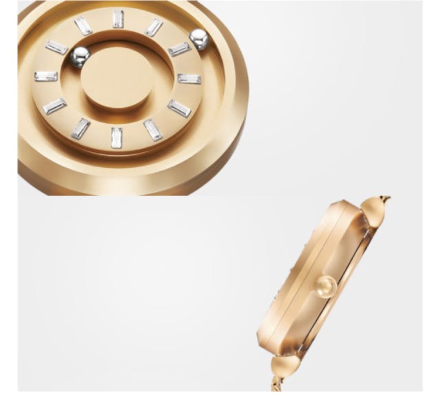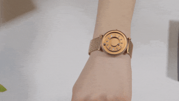 磁力で動く腕時計の第二弾は女性も着けられるレディースサイズをご用意。シーンを選ばないシンプルデザインが特徴。