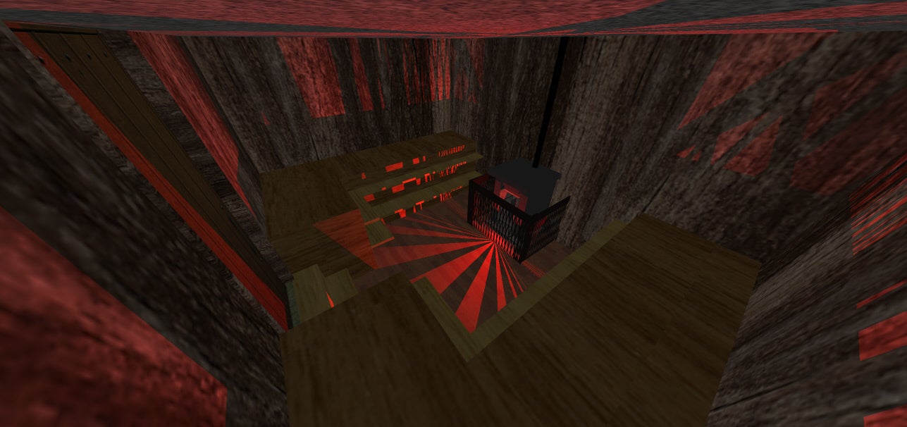 ▼真っ暗なサウナ内で薪ストーブの炎が灯されて▼